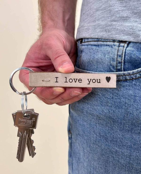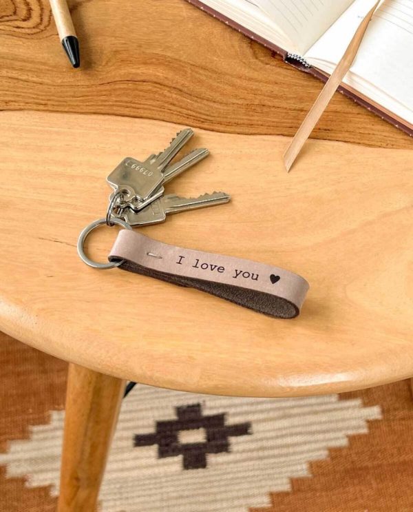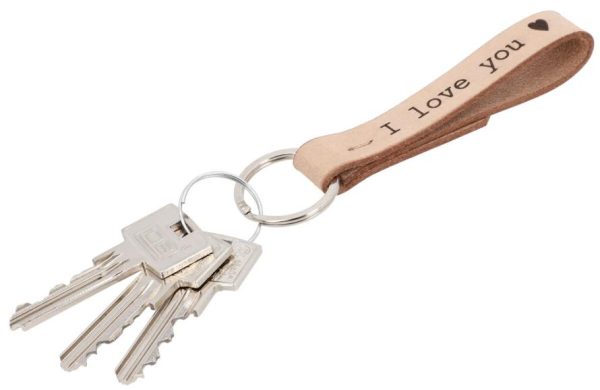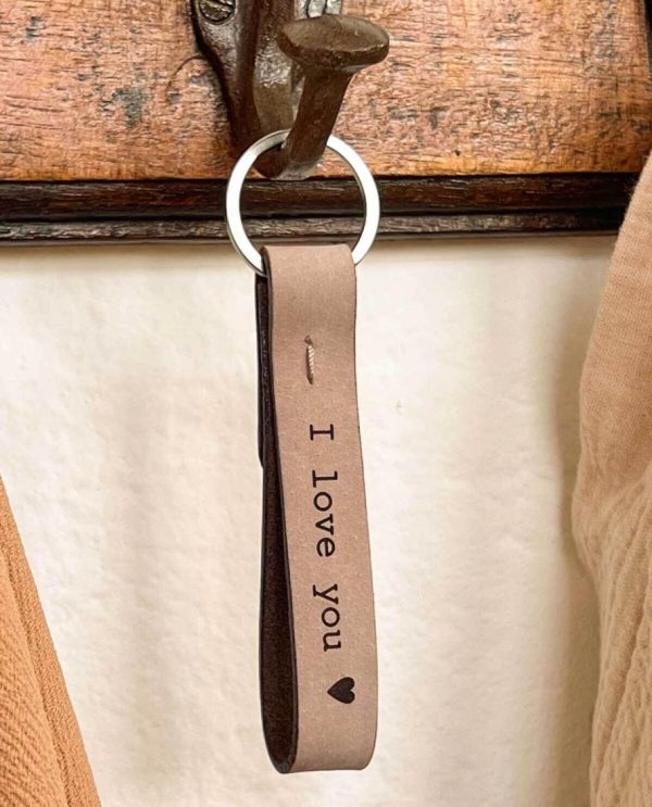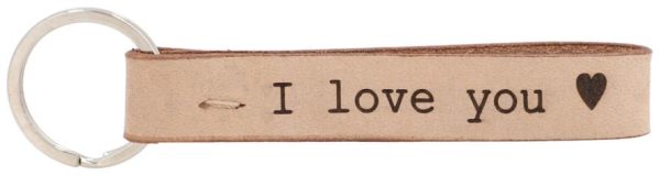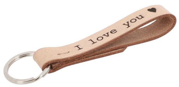 Schlüsselanhänger „I love you“ Lederanhänger Schlüsselring Hellbraun Leder