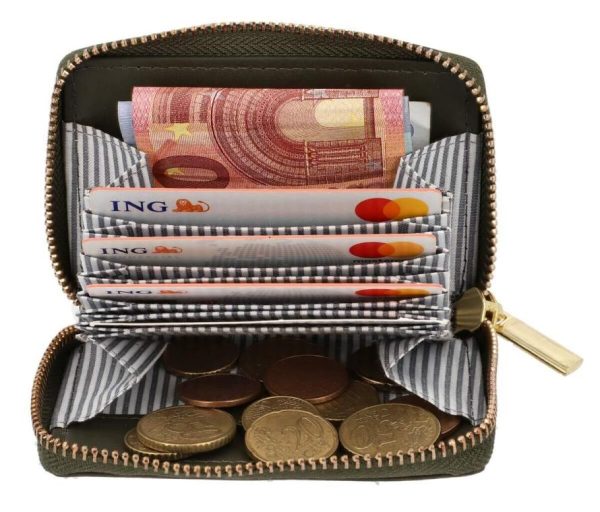 Kartenhülle Kartenhalter Kartenetui Brieftasche Geldbeutel Geldbörse Klein Damen Herren Grün Leder