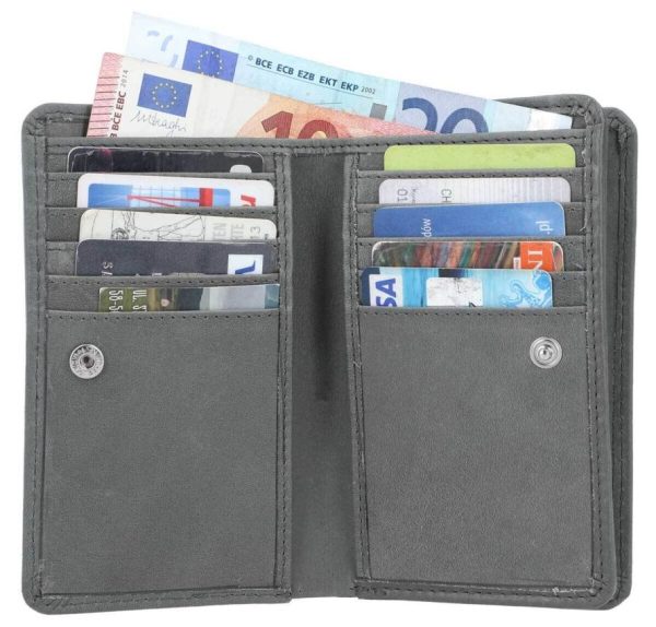 Geldbörse Kleines Portemonnaie Damen Vintage Grau Leder