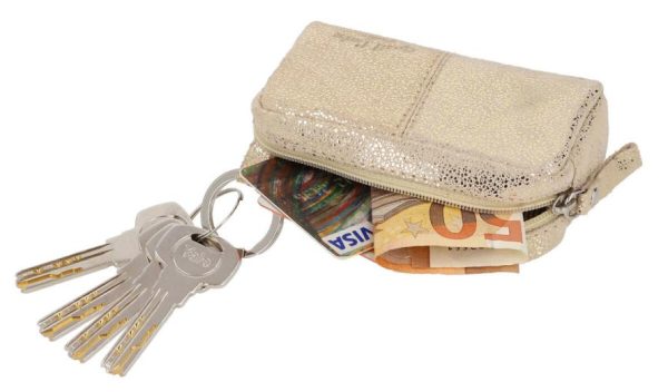 Schlüsseltasche Schlüsseletui Schlüsselmappe Schlüsselmäppchen Damen Silber Leder