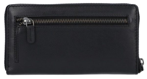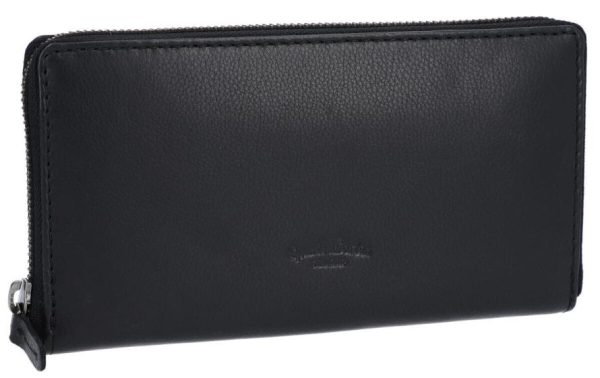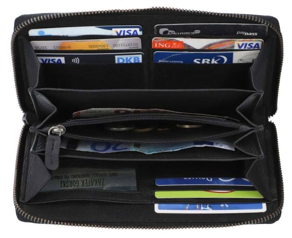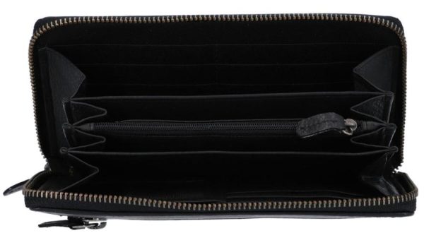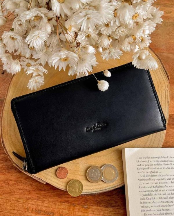 Geldbörse Portemonnaie Brieftasche lang Geldbeutel viele Fächer Damen Schwarz Leder