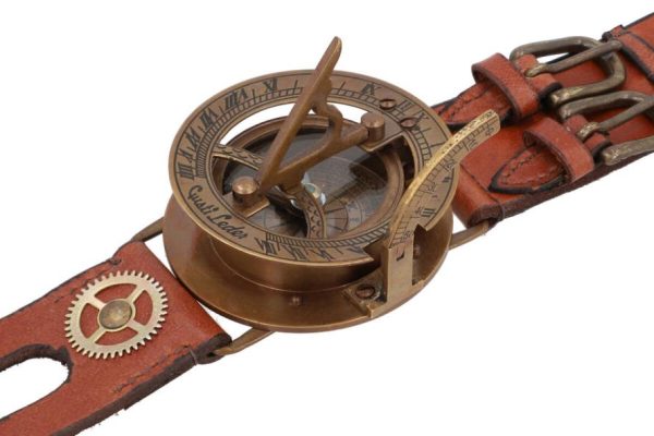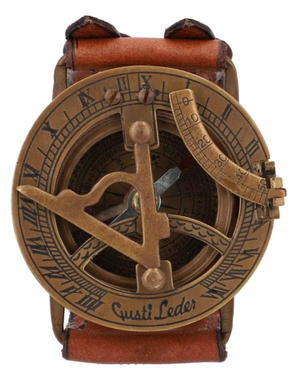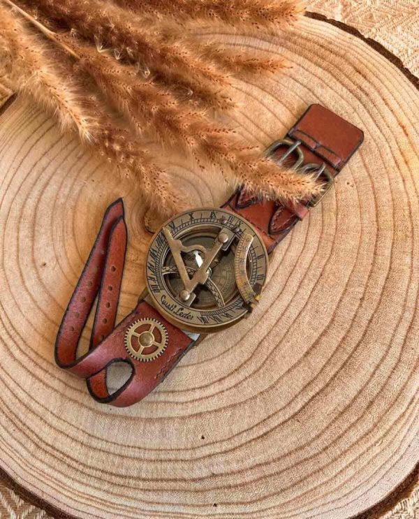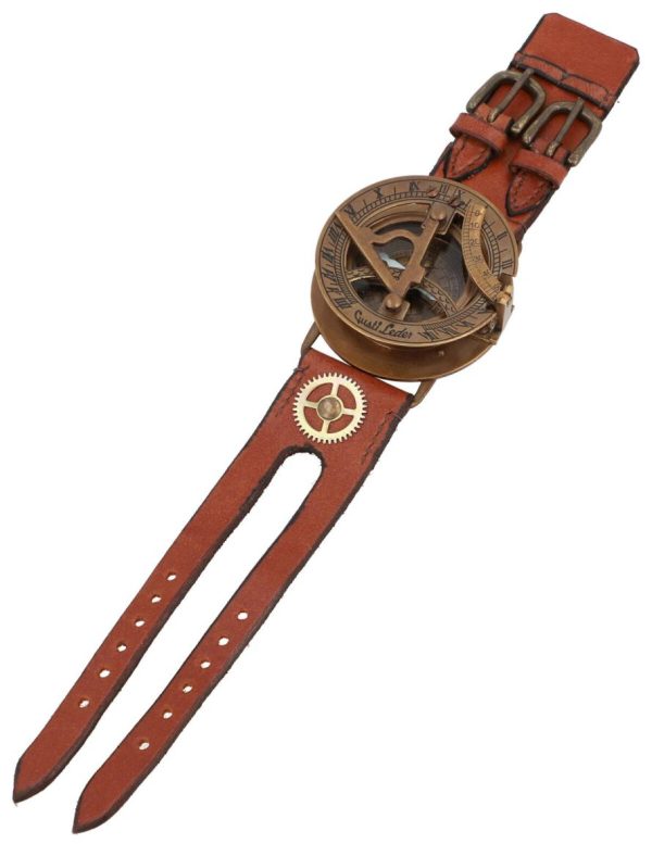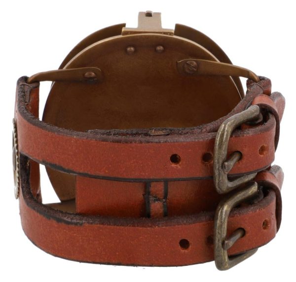 Steampunk Uhr Sonnenuhr Lederarmband Accessoires Herren Vintage Braun Gold Leder