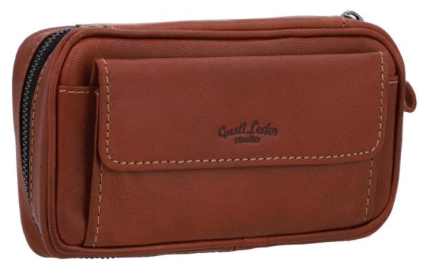 Hergestellt in :IndienProduzent:50-150 MitarbeiterLeder:RindslederLederart:Semianilinleder mit Wachs überzogenGerbung:ChromgerbungFarbe:braunAbmessungen (BxHxT):18,5 x 9 x 5,5 cmInnenfächer:4Innenstoff:NaturkautschukMarke:Gusti Leder studioVerschluss:Reißverschluss