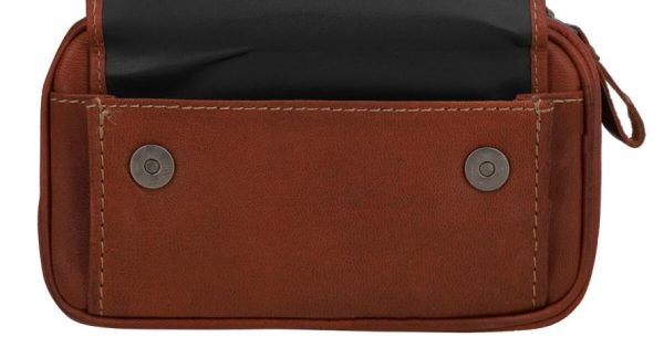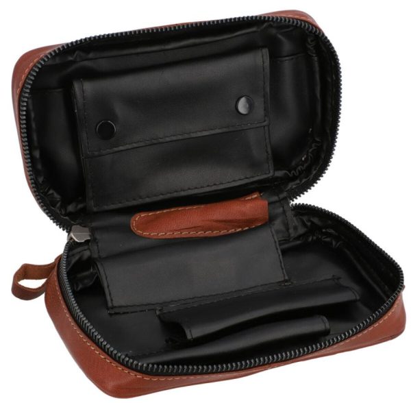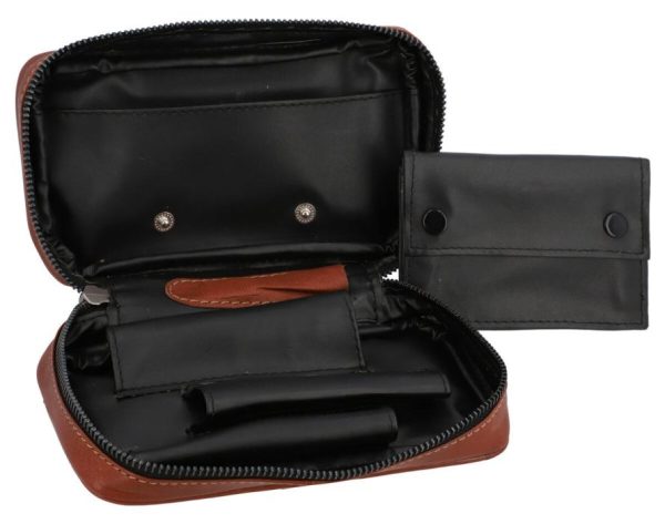 Pfeifentasche für 3 Pfeifen extra Tabakfach Innenstoff aus Naturkautschuk Pfeifenbeutel Braun Leder