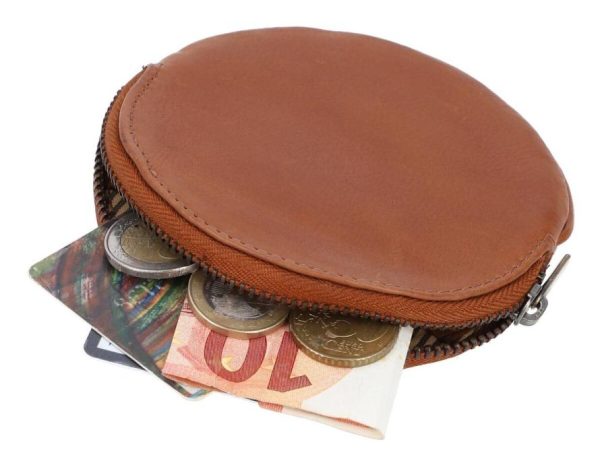 Portemonnaie Geldbörse klein Geldbeutel Brieftasche rund Braun Leder