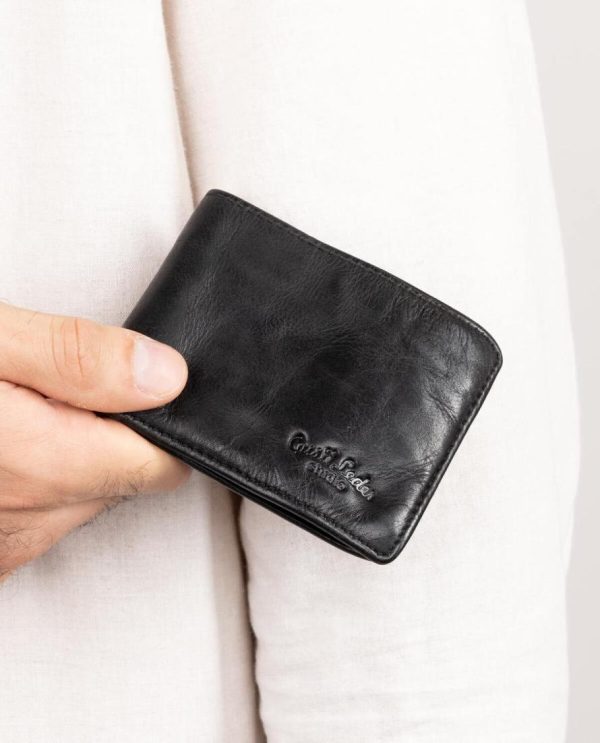 Geldbörse Portemonnaie Geldbeutel Herren Vintage Schwarz Leder