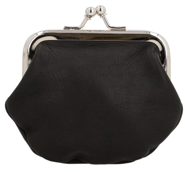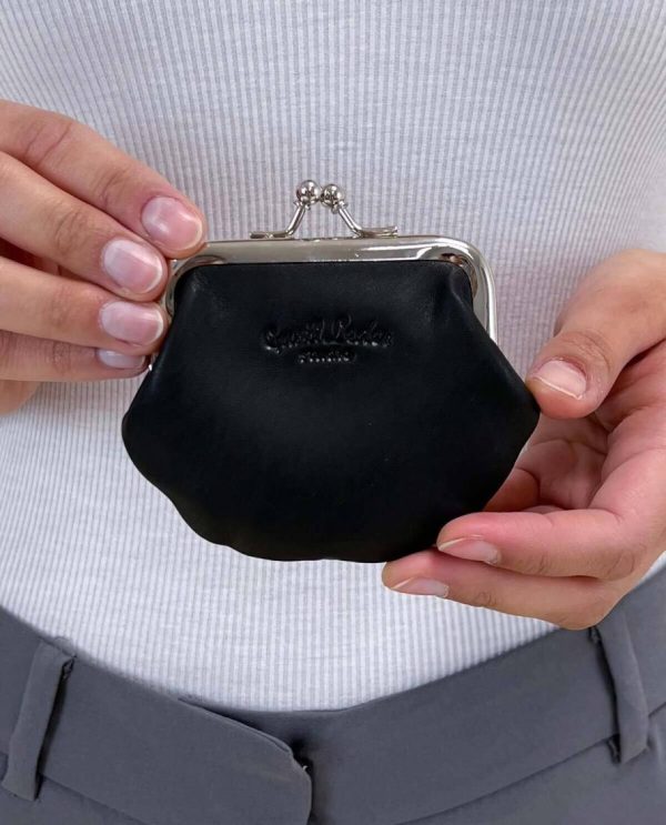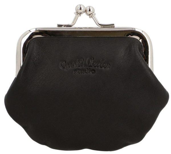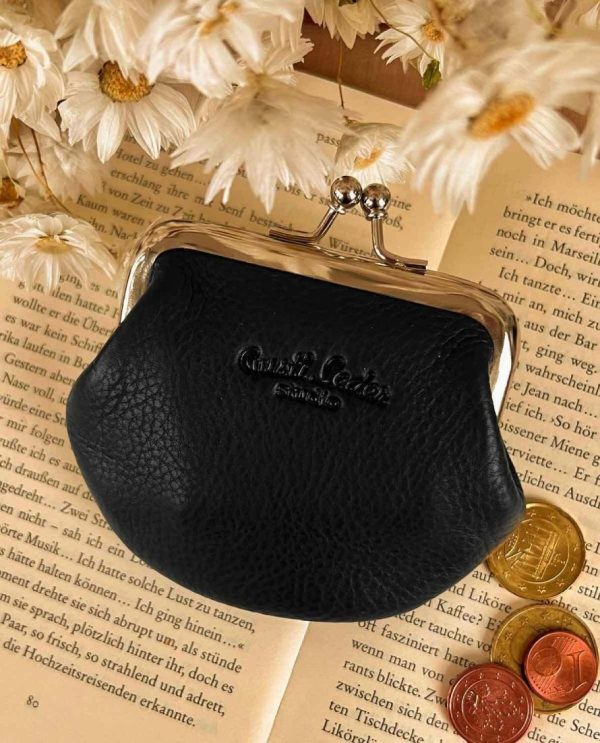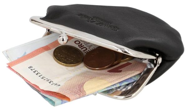 Portemonnaie aus Leder mit Clipverschluss Klickverschluss Spangenportemonnaie Geldbörse Klein Vintage Schwarz