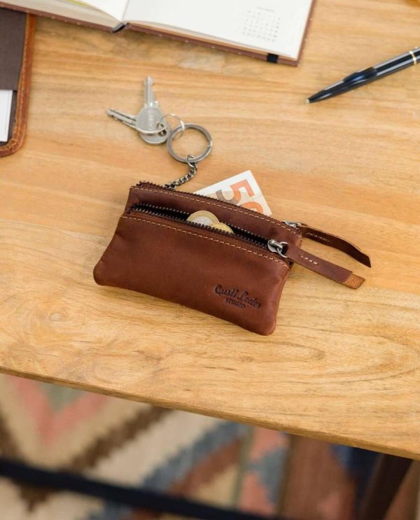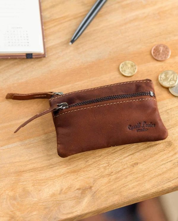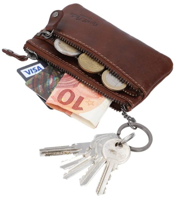 Schlüsseltasche Portemonnaie Geldbeutel Klein Schlüsseletui Schlüsselmappe Braun Leder