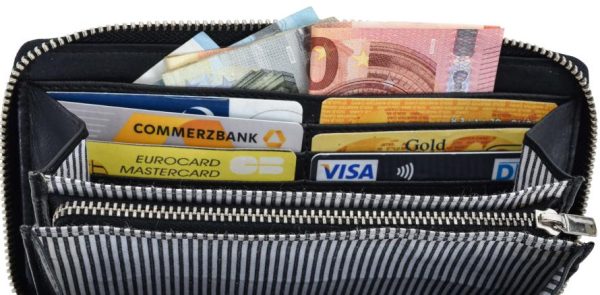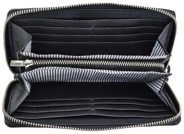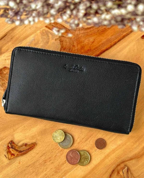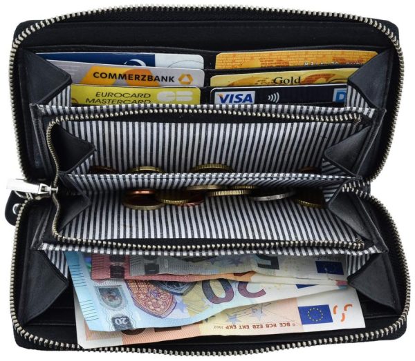 Geldbörse Portemonnaie Brieftasche Geldbeutel Vintage Damen Schwarz Leder