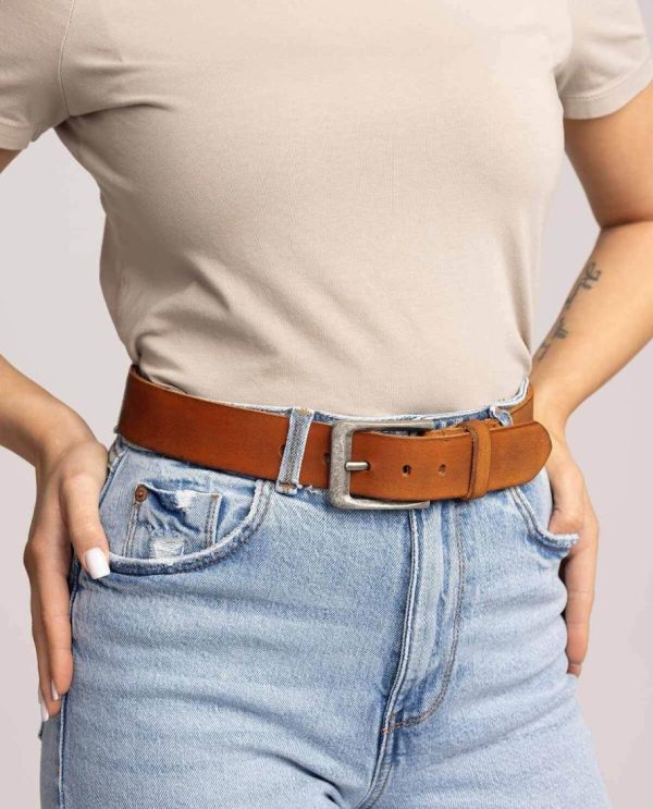 Gürtel schlichter Ledergürtel mit silberner Schnalle Accessoires Damen 80, 85, 90, 95, 100, 105, 110, 115 cm Braun Leder