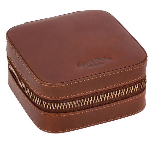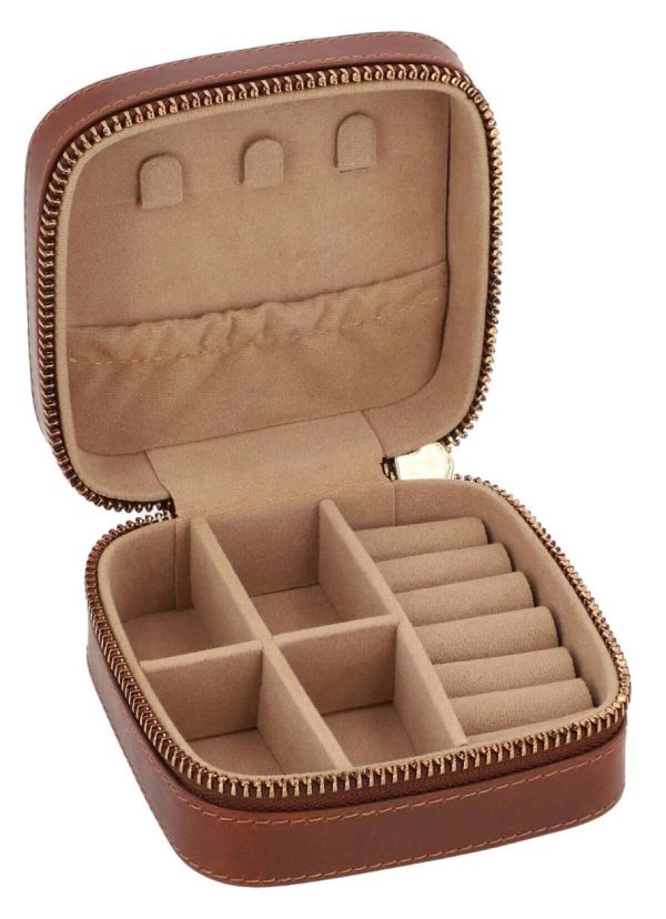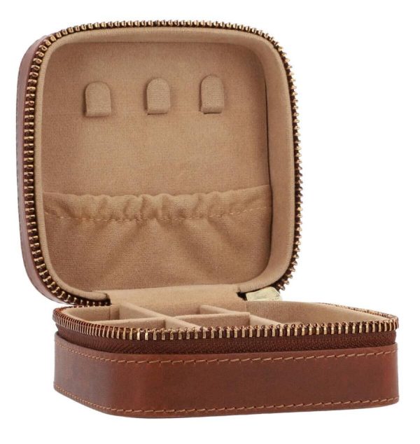 Schmucketui Schmucktäschchen Damen Dunkelbraun Leder