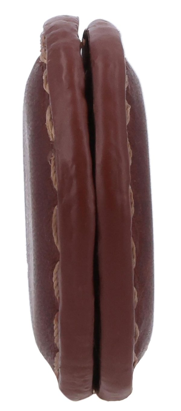 Hergestellt in :IndienProduzent:50-150 MitarbeiterLeder:RindslederLederart:Semianilinleder mit Wachs überzogenGerbung:ChromgerbungFarbe:dunkelbraunAbmessungen (BxHxT):4 x 0,3 x 4 cmBesondere Eigenschaften:magnetischGewicht:0,026 kg