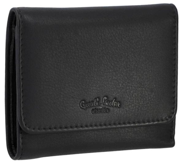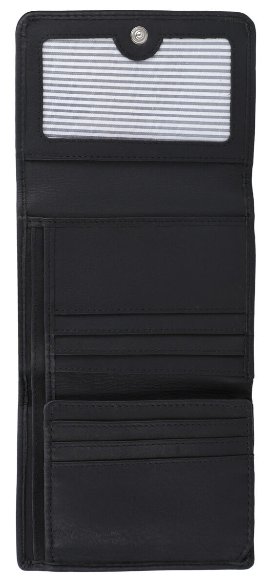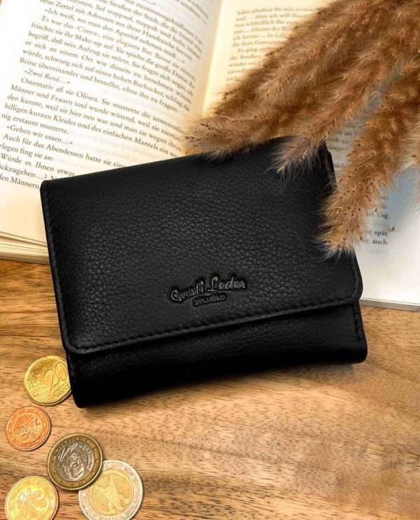 Geldbeutel Geldbörse Portemonnaie Damen Schwarz Leder