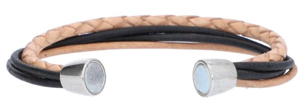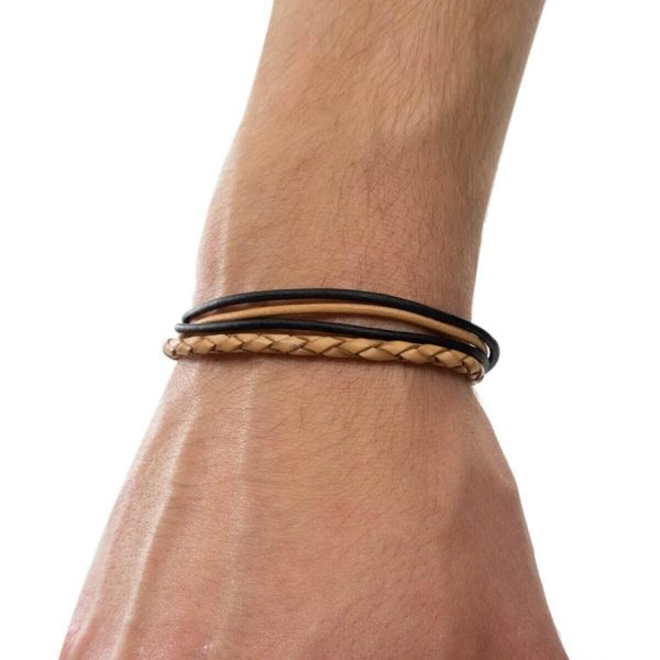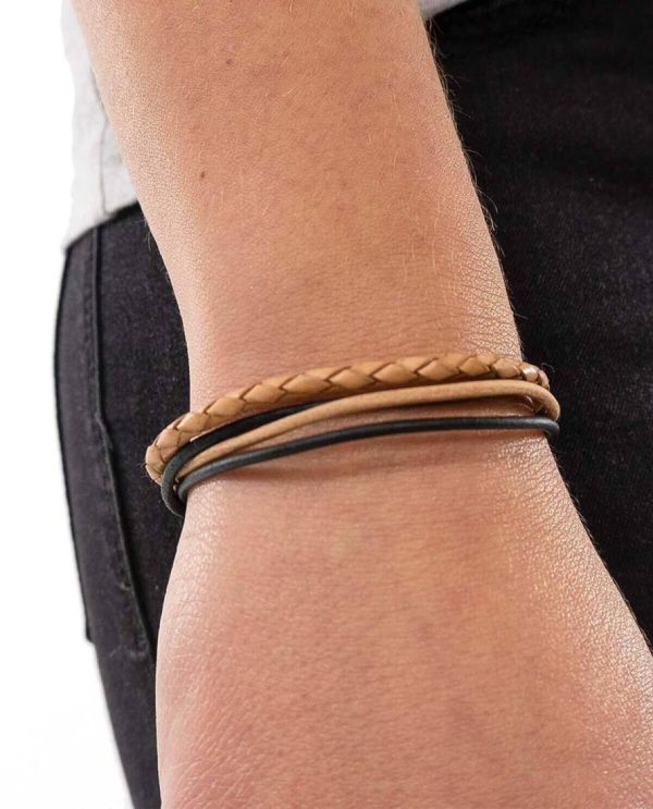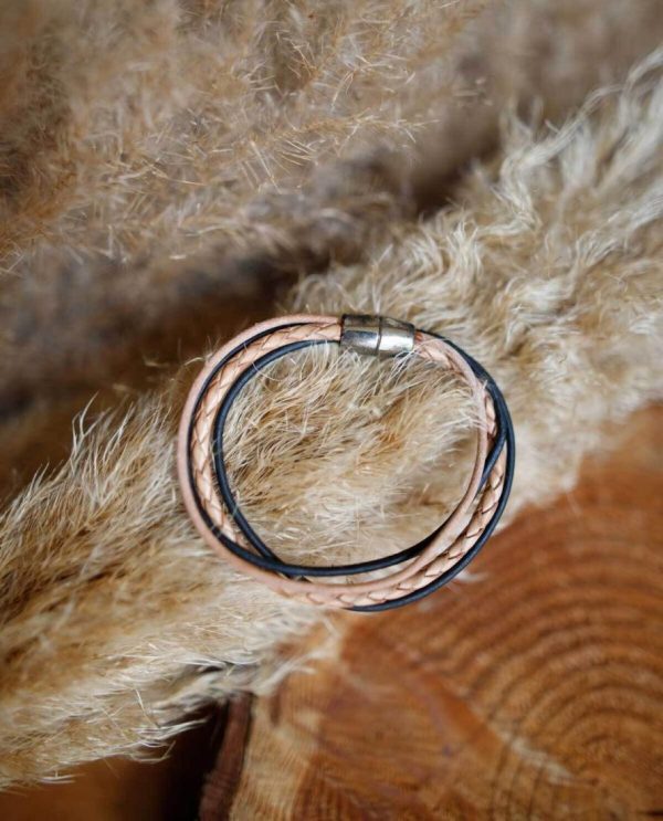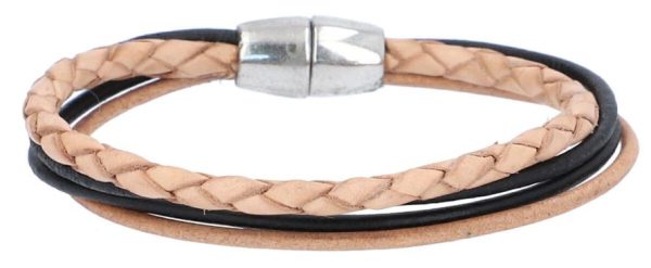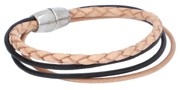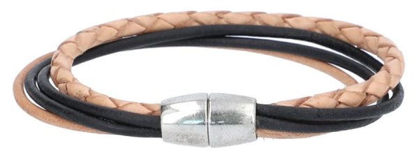 Armband Armreif Lederschmuck geflochten Magnetverschluss mehrere Stränge Größe S Braun und Schwarz Leder