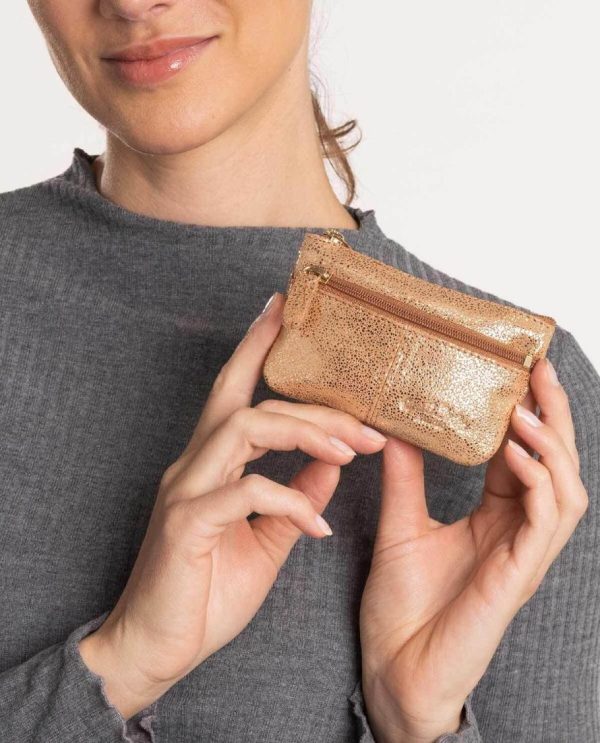 Schlüsseltasche Portemonnaie Geldbeutel Klein Schlüsseletui Schlüsselmappe Gold Leder