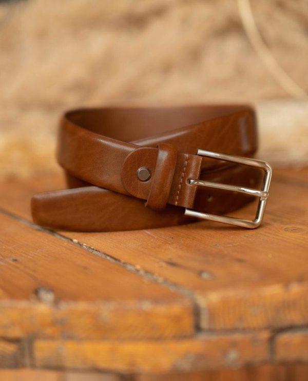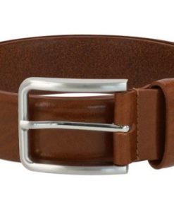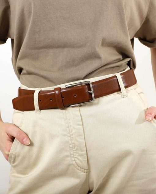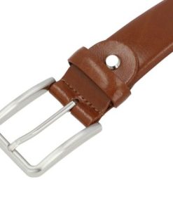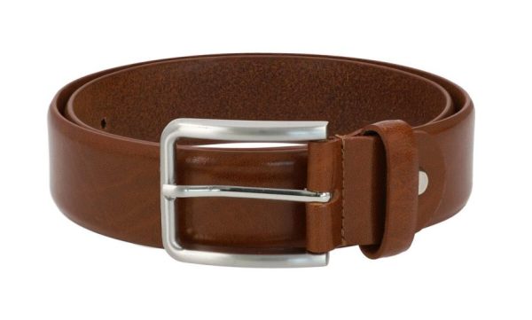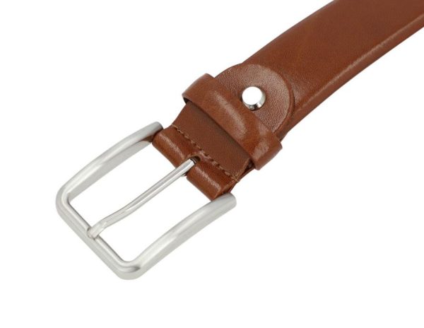 Echt Leder Gürtel Ledergürtel mit silbernen Schnalle Schlicht Damen Herren Braun