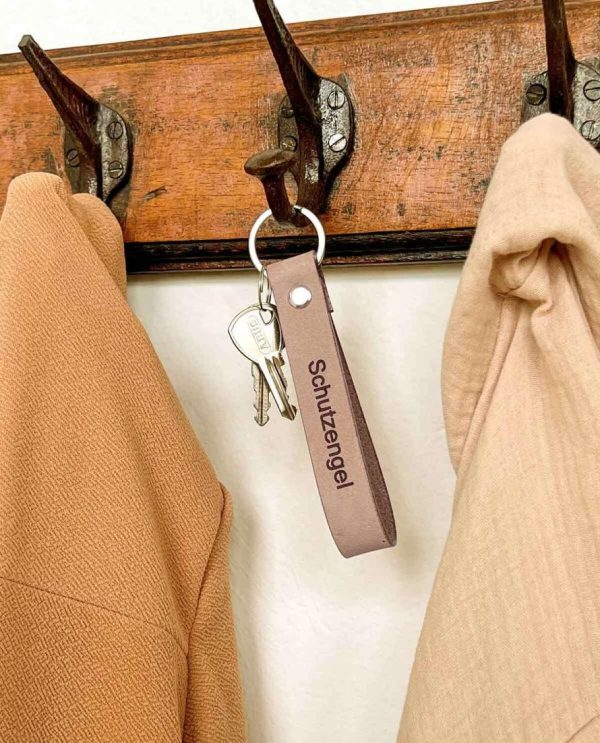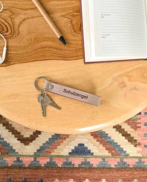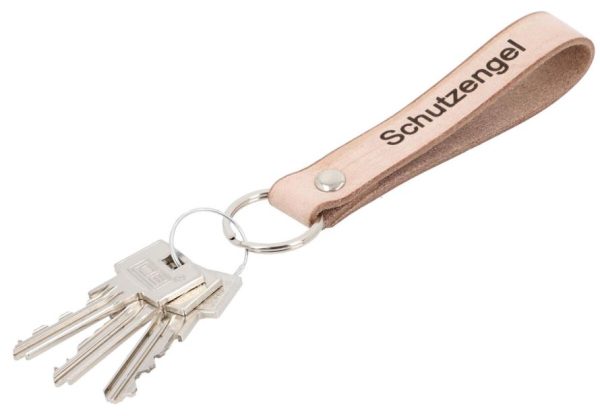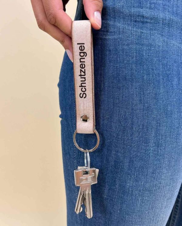 Schlüsselanhänger „Schutzengel“ Schlüsselband Lederanhänger Hellbraun Leder