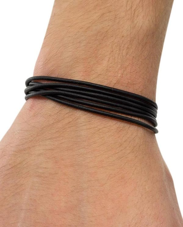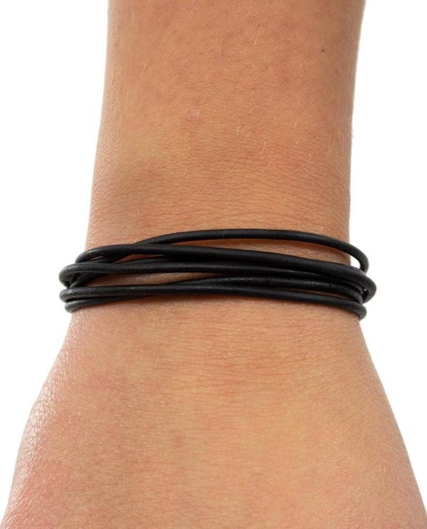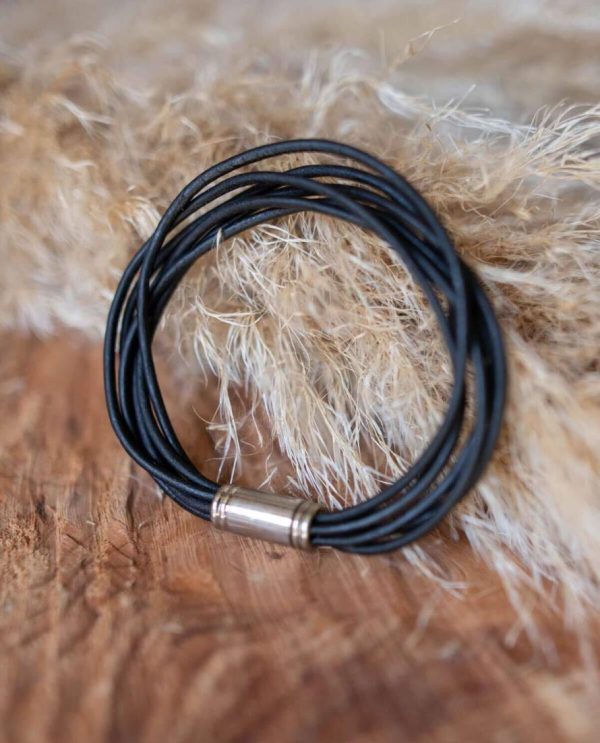 Armband Armreif mehrreihig mehrere Stränge Lederschmuck Surferarmband Freundschaftsarmband flexibel Lederarmband Schmuck Magnetverschluss dezent Größe XS Schwarz Leder