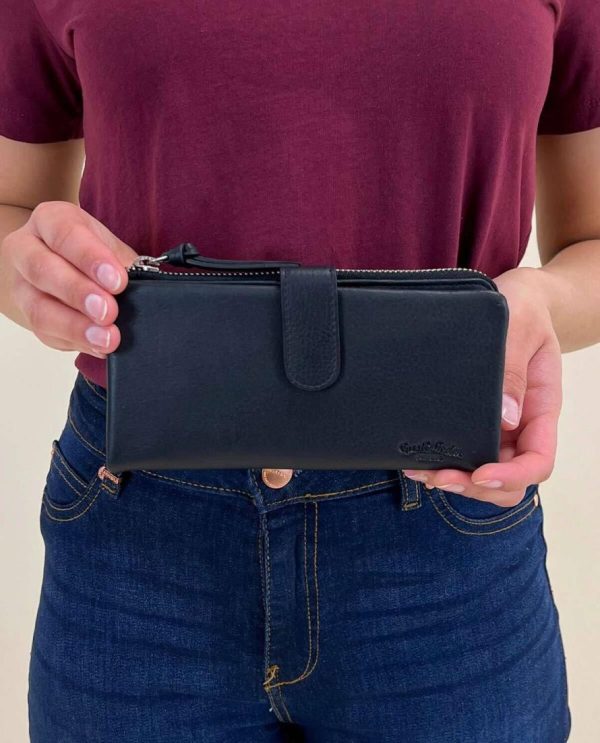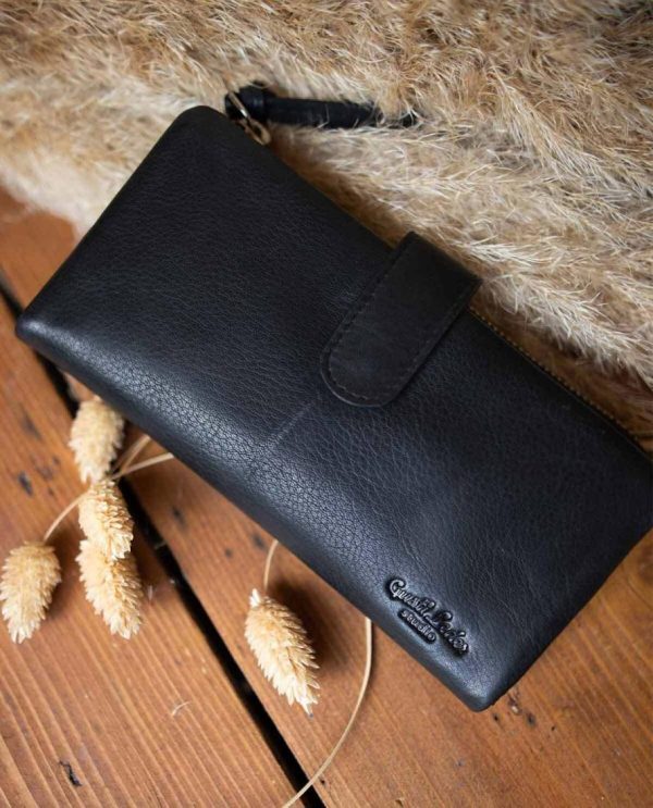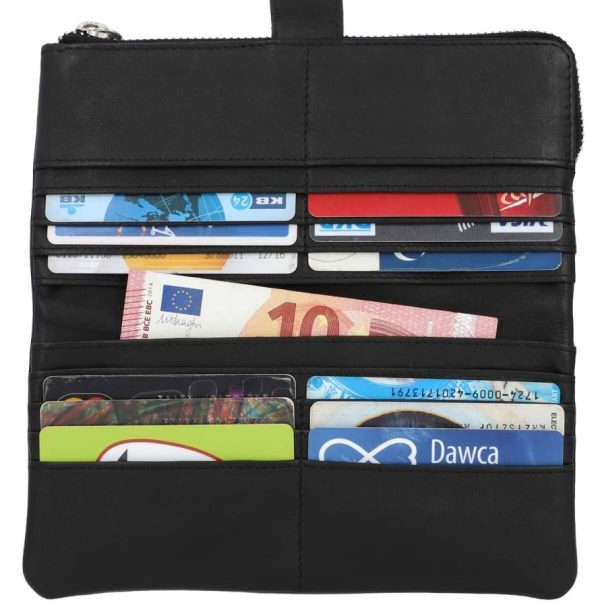 Geldbörse Portemonnaie Geldbeutel Kartenetui Vintage Damen extra Münzfach Schwarz Leder