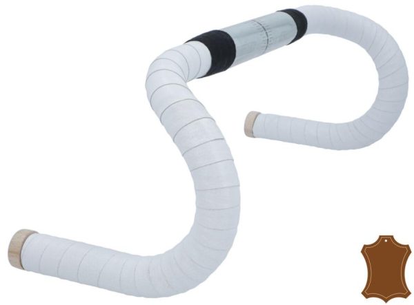 Lenkerband Echtes Leder 200 cm mit Korken Fahrrad 2er Set Weiß Leder