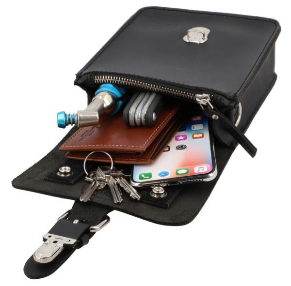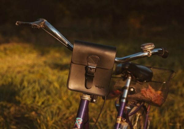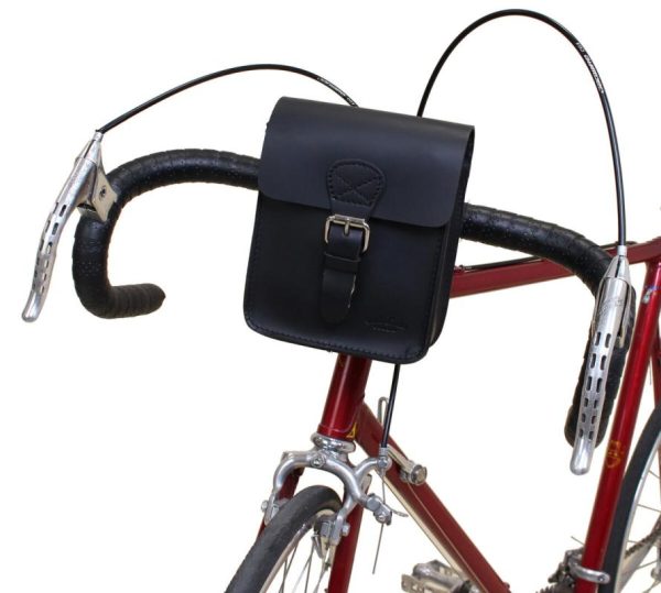 Lenkertasche Umhängetasche Gürteltasche Fahrradtasche Vintage Schwarz Leder
