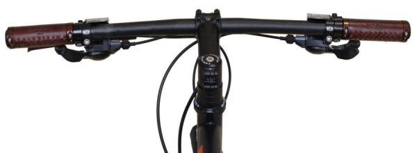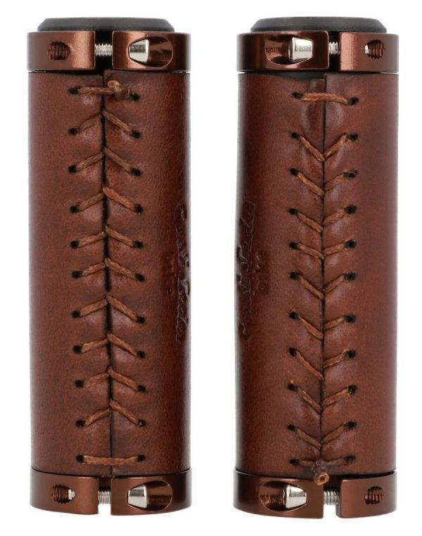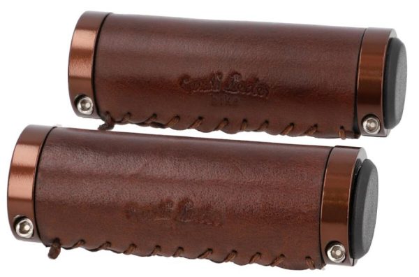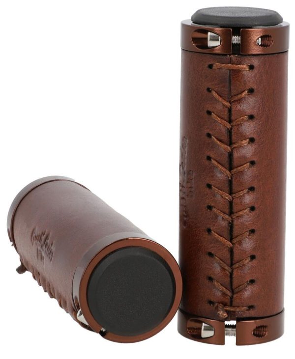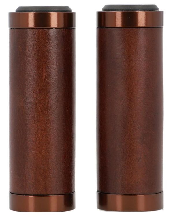 Fahrradgriff Ledergriff Lenkergriff 2er Set Rosagold Metallring Braun Leder