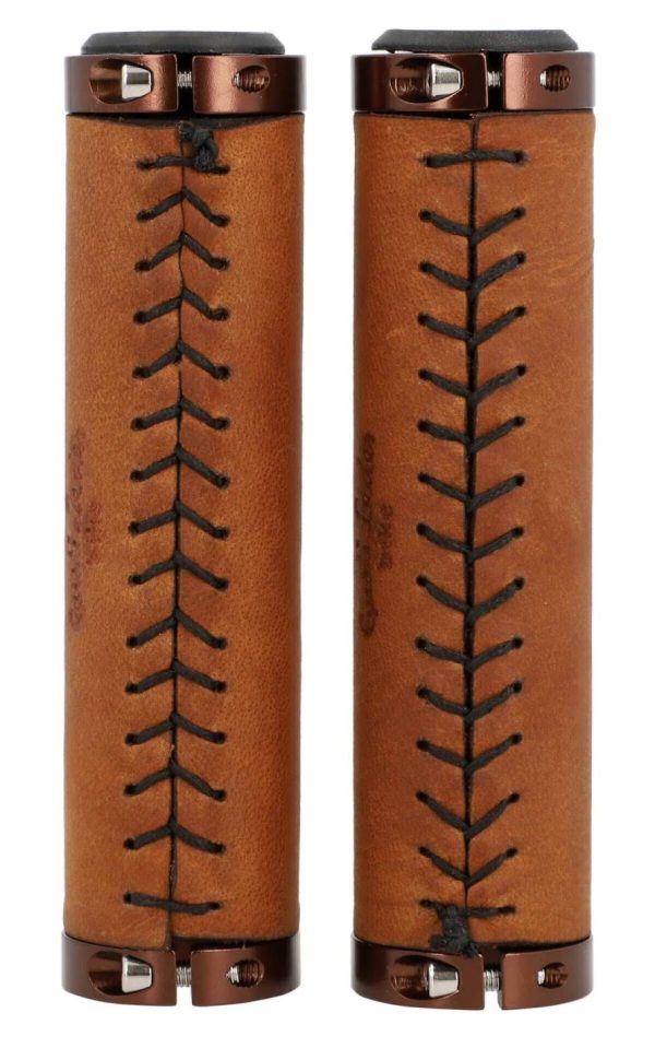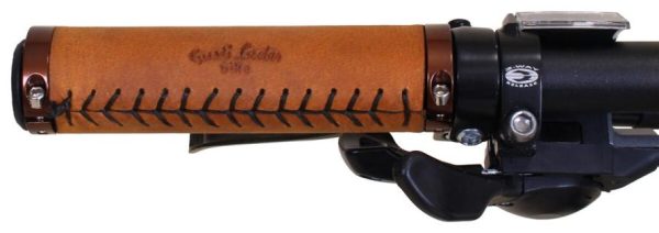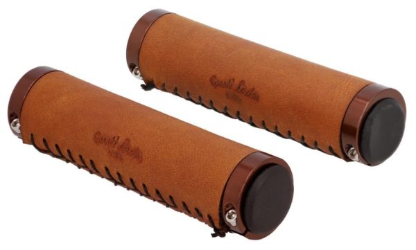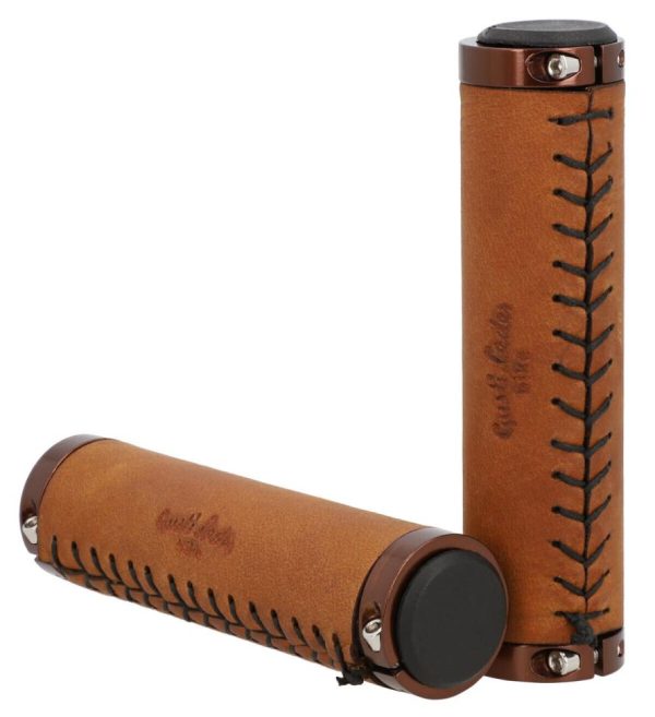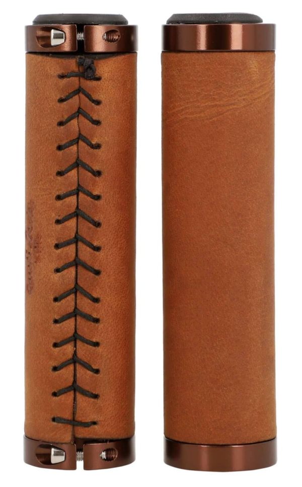 Fahrradgriff Ledergriff Lenkergriff 2er Set Rosagold Metallring Braun Leder