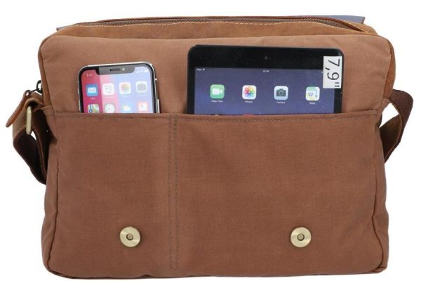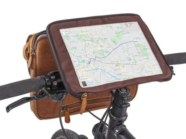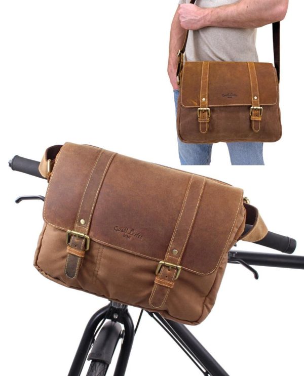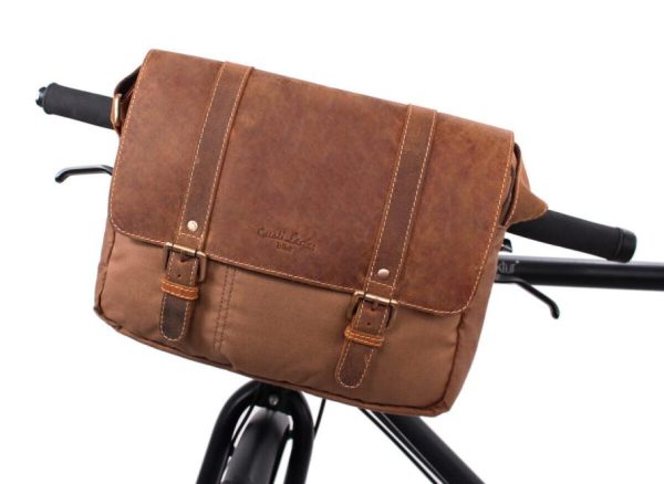 Lenkertasche inkl. Platte Umhängetasche Fahrradtasche Tablet Tasche Ledertasche Vintage Braun Leder & Canvas