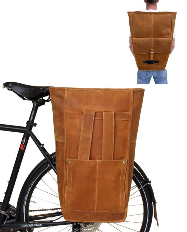 Fahrradtasche 2-in-1 Fahrradrucksack Rucksack & Gepäckträgertasche Braun Leder