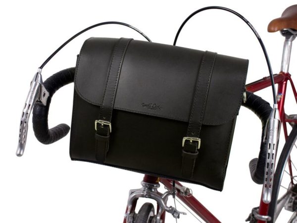 Lenkertasche Umhängetasche Fahrradtasche Tasche Ledertasche Vintage Schwarz Leder