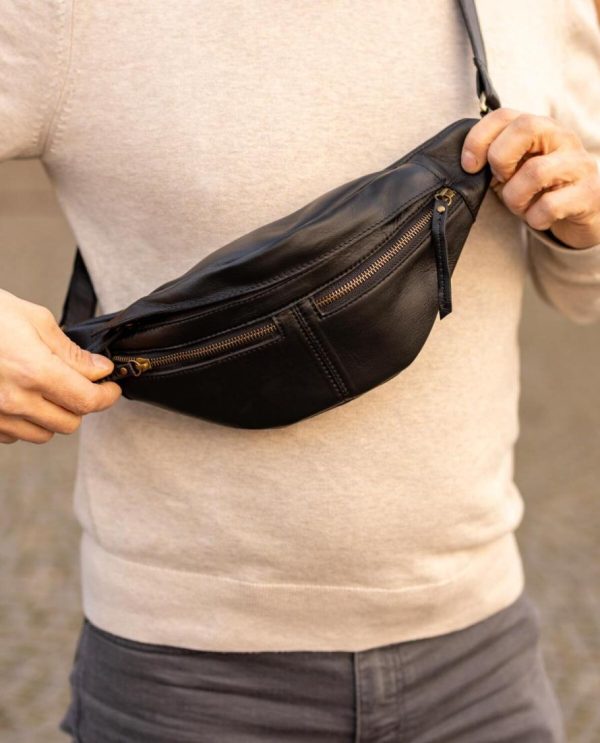 Gusti Leder Acton Vintage Bauchtasche aus 100% Büffelleder – Schwarz