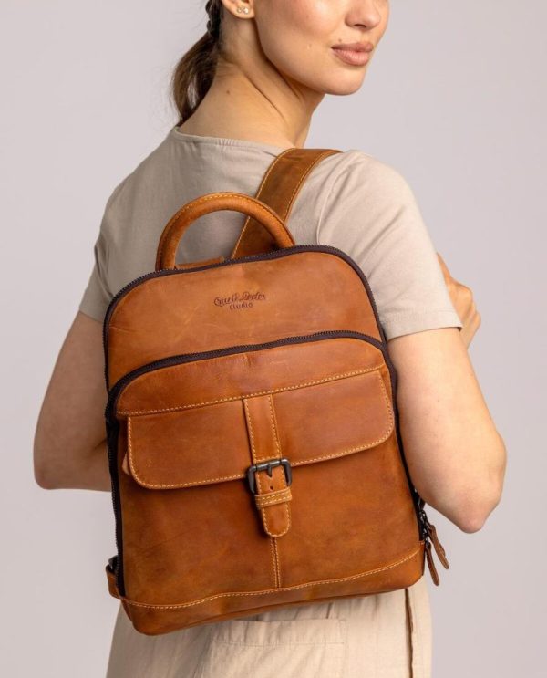 Gusti Leder Alena Vintage Lederrucksack | Braun | Echt Ziegenleder | 25,5x29x8,5 cm