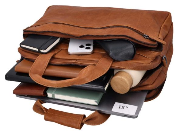 Gusti Leder Alvaro Business-Laptoptasche aus echtem Rindsleder - 40x30x13 cm - Braun Menge