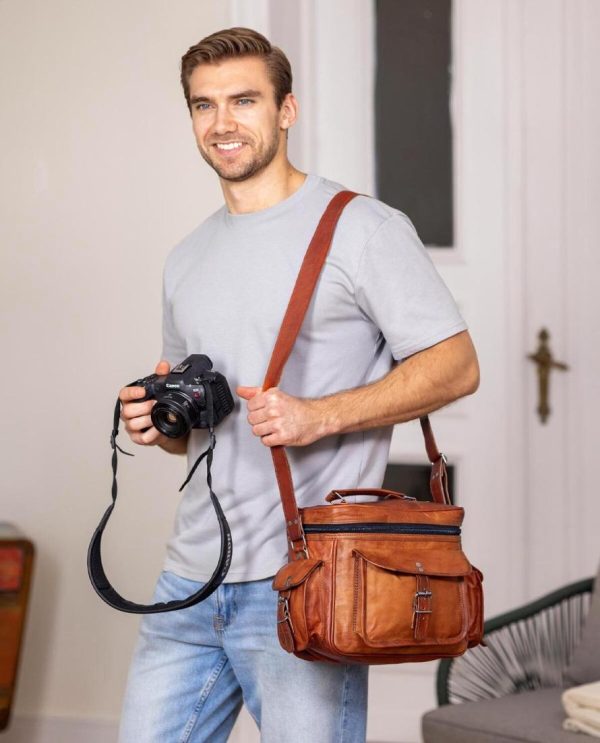 Gusti Leder Amanda Vintage Fototasche aus 100% echtem Ziegenleder - 26x25x13 cm - Braun Menge
