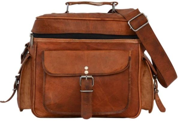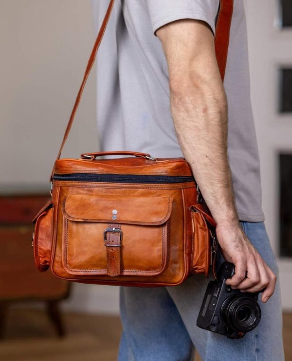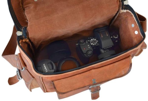 Gusti Leder Amanda Vintage Fototasche aus 100% echtem Ziegenleder – 26x25x13 cm – Braun