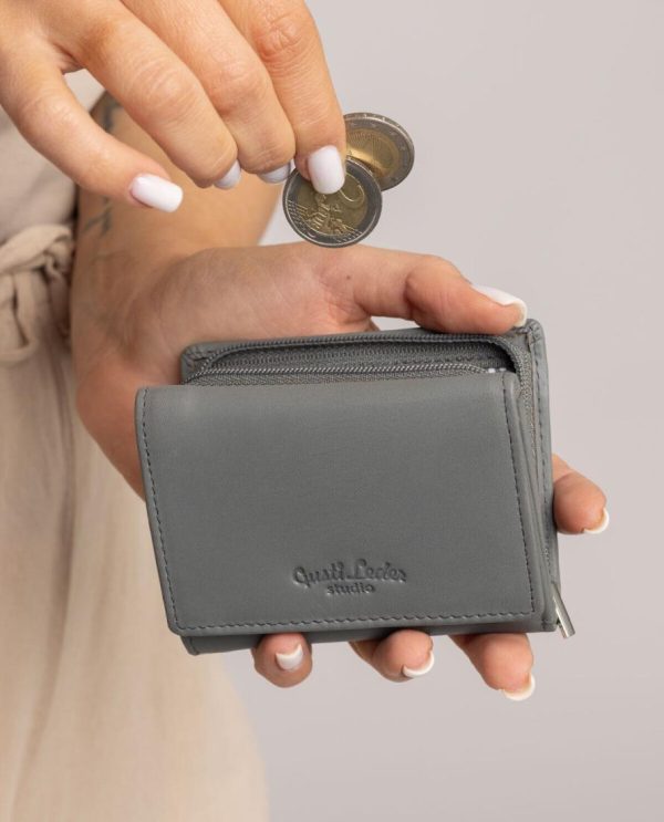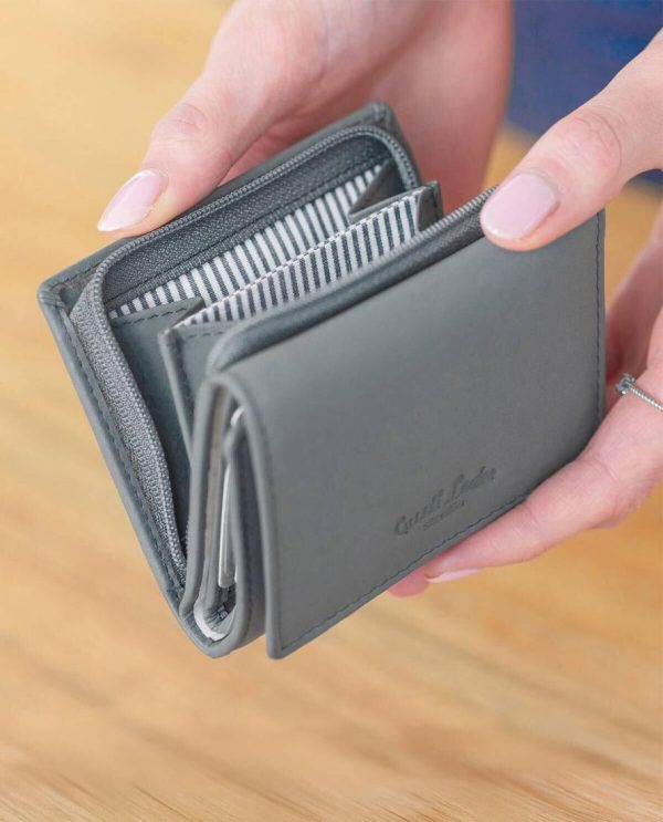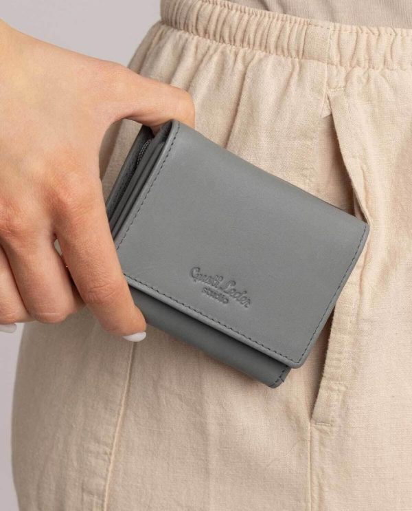 Gusti Leder August Geldbörse – Graues Echtleder-Portemonnaie mit Vintage-Look, 6+ Kartenfächer