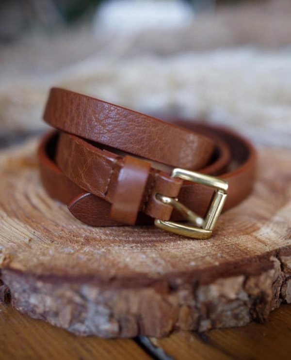 Gusti Leder Birgit Damengürtel aus echtem Büffelleder – 2 cm breit, goldene Schnalle, braun (80-120 cm)