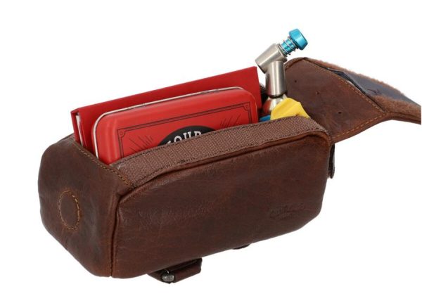 Gusti Leder Charly G. Fahrradtasche aus echtem Büffelleder – Lenkertasche mit Handyhalterung & Navi-Tasche, Braun