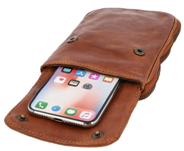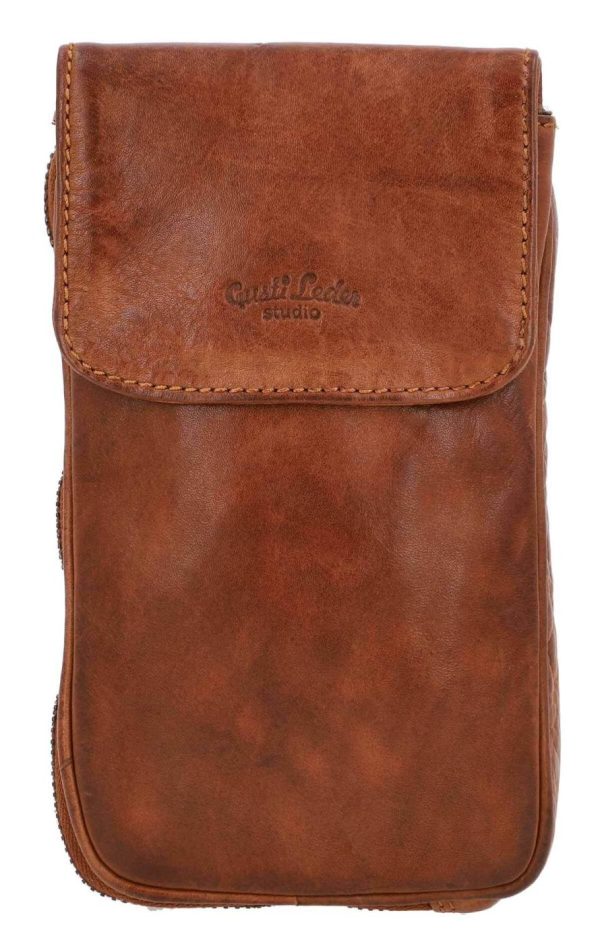 Gusti Leder Estera Handytasche | Vintage Leder Umhängetasche Braun | Chromfrei Gegerbt | 11x18 cm Menge