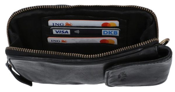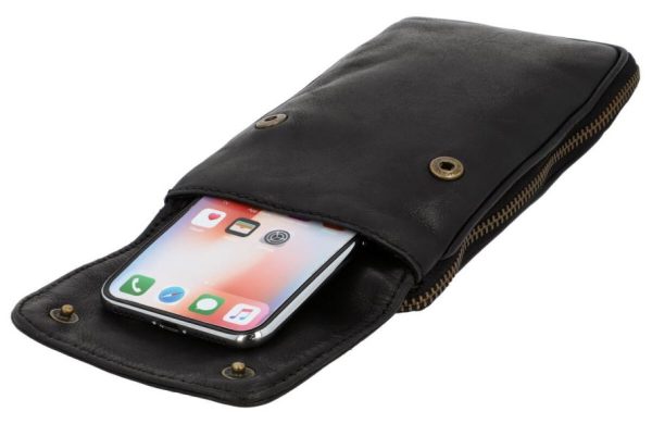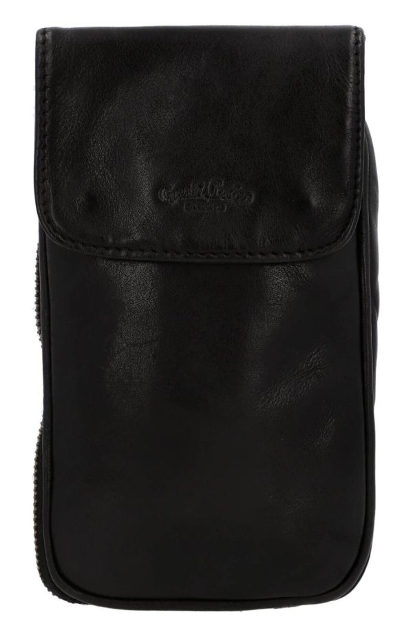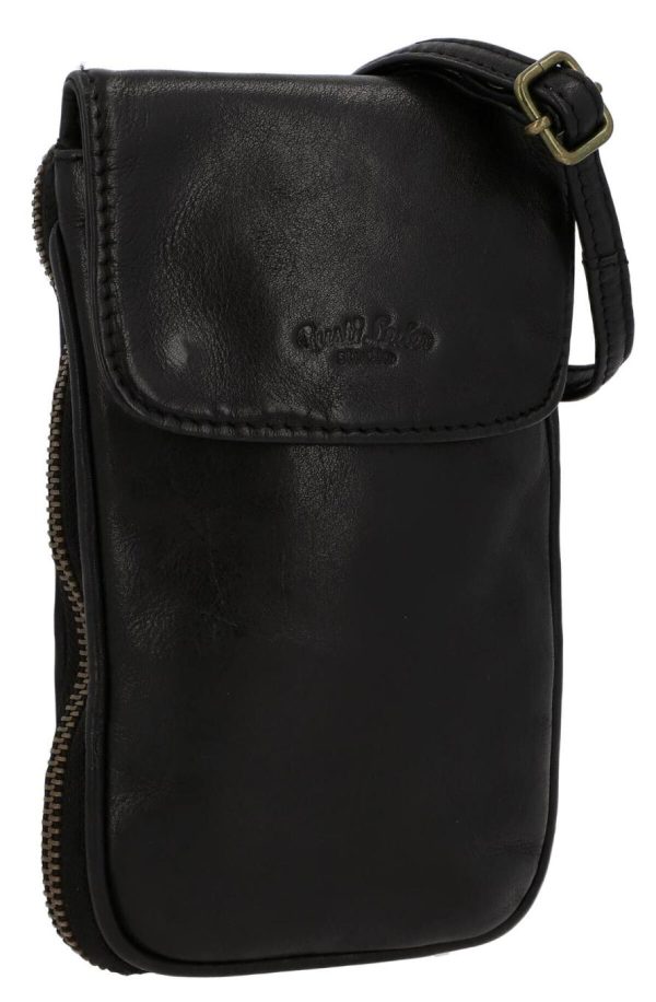Gusti Leder Estera Umhängetasche Vintage Schwarz - Rindsleder Handytasche mit verstellbarem Schultergurt Menge