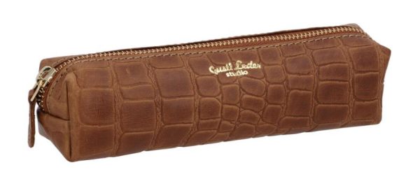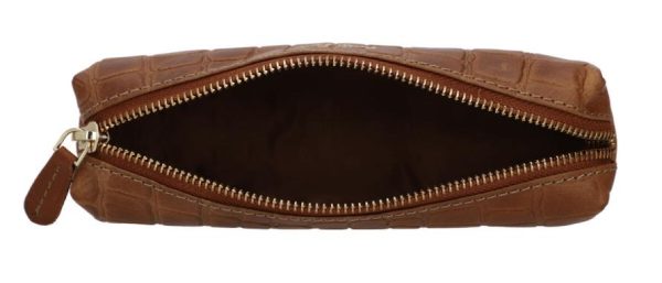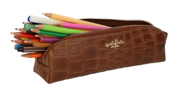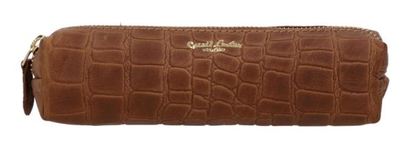 Gusti Leder Federmappe Addison aus echtem Rindsleder | Braun | Metallreißverschluss | 19 cm