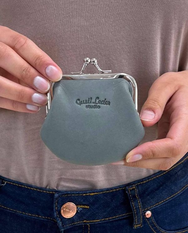 Gusti Leder Fenja Portemonnaie | Vintage Geldbörse mit Knipsverschluss | Echt Rindsleder Grau