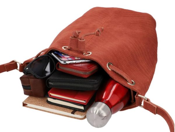 Gusti Leder Grethe Umhängetasche | Wildleder Bucket Bag Damen | Rostfarben | 25x19,5x18 cm Menge