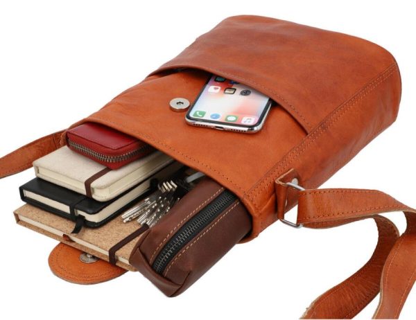 Gusti Leder Jacqueline S Umhängetasche Shopper Vintage Braun | Echt Ziegenleder | A5 Format