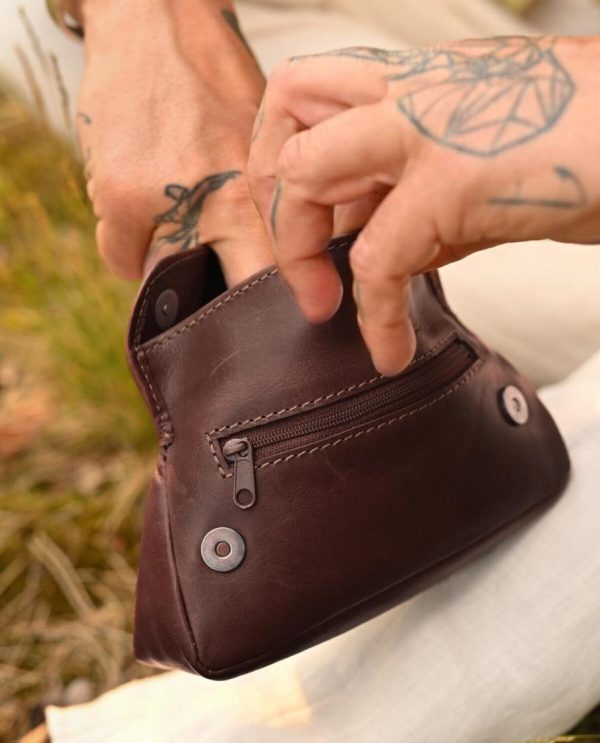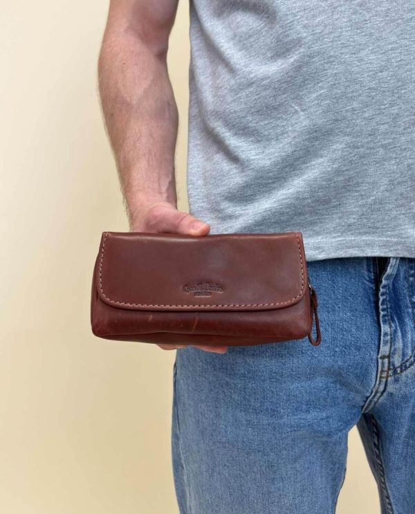 Gusti Leder Jared Pfeifentasche aus echtem Rindsleder mit Magnetverschluss – Braun