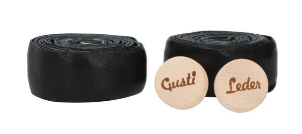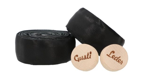 Gusti Leder Lenkerband Adri V. | Echtes Ziegenleder, 200 cm, Schwarz, inkl. 2 Korken mit Logo