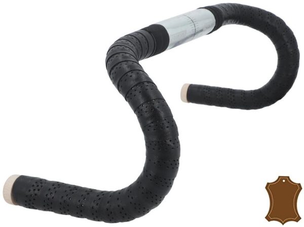 Gusti Leder Lenkerband Set aus echtem Ziegenleder mit Logo-Korken | 80 cm Braun | Fahrradzubehör