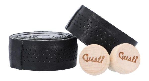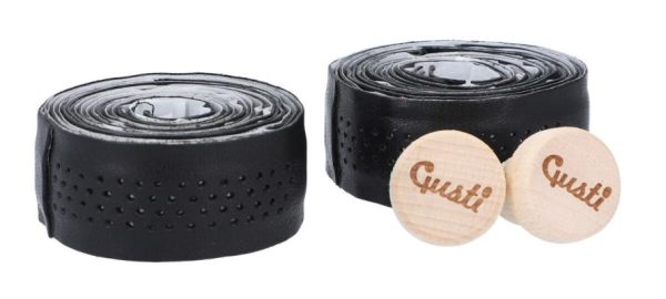 Gusti Leder Lenkerband Set aus echtem Ziegenleder mit Logo-Korken | 80 cm Braun | Fahrradzubehör Menge