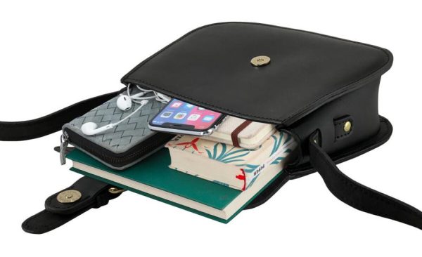 Gusti Leder Linda Umhängetasche aus echtem Rindsleder mit Goldapplikationen – Schwarz