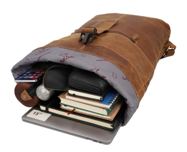 Gusti Leder Mattis Rolltop Rucksack – 18L Vintage Lederrucksack für Laptop & Outdoor, Braun